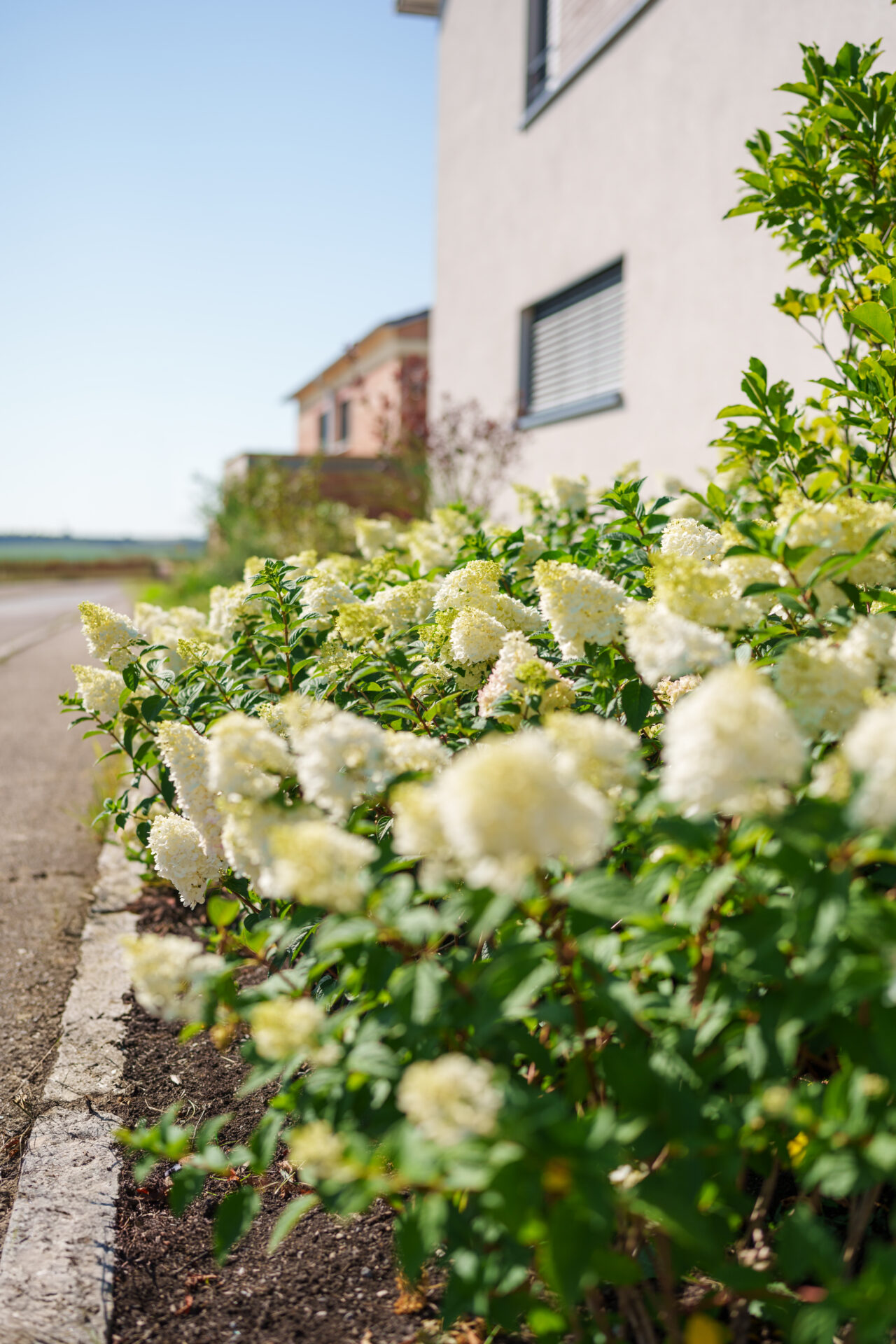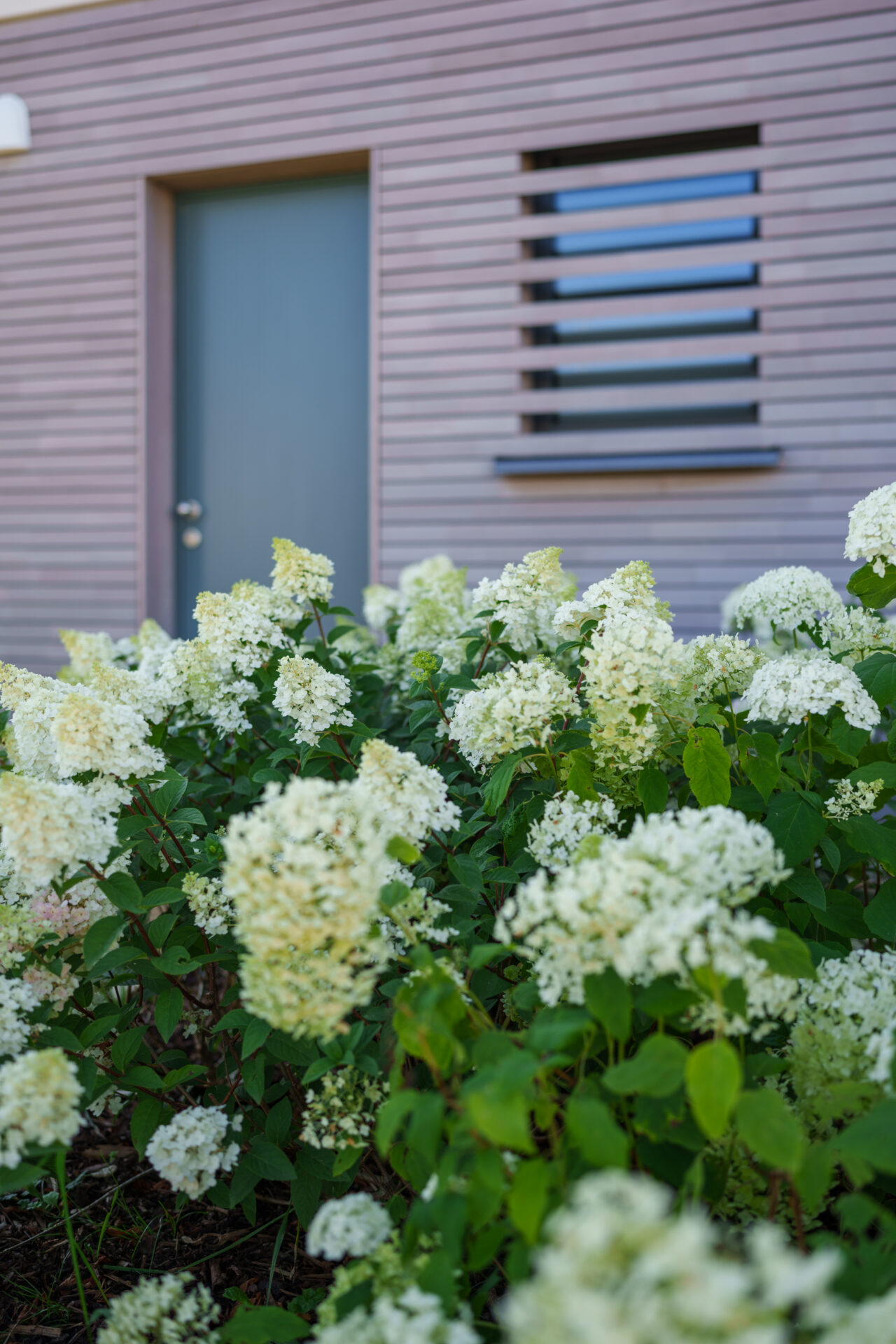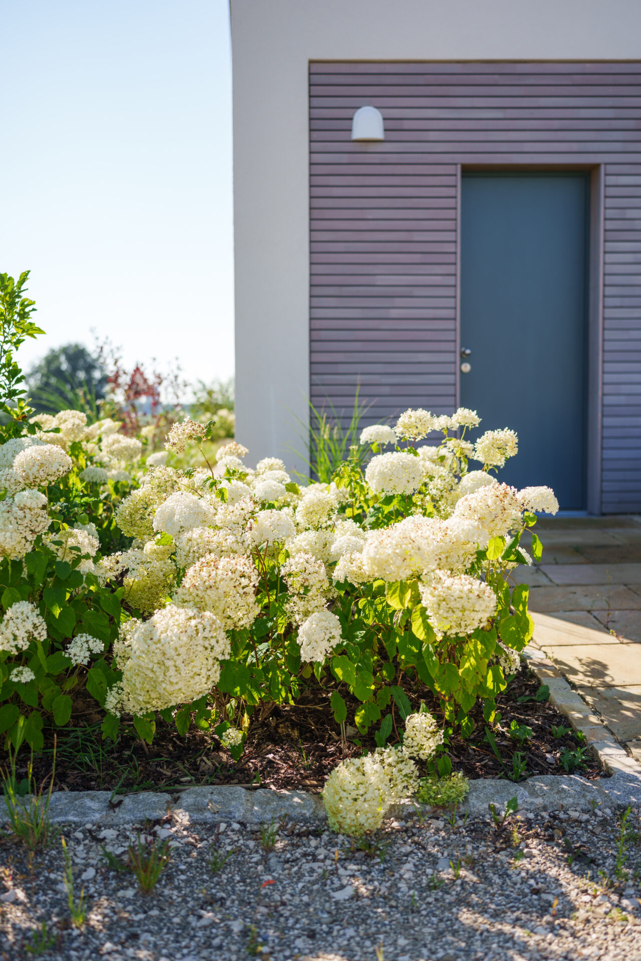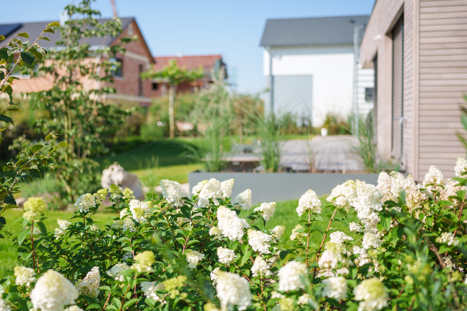 Hortensien und Holzterrasse