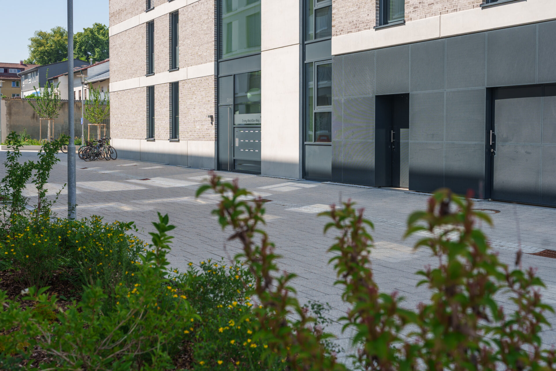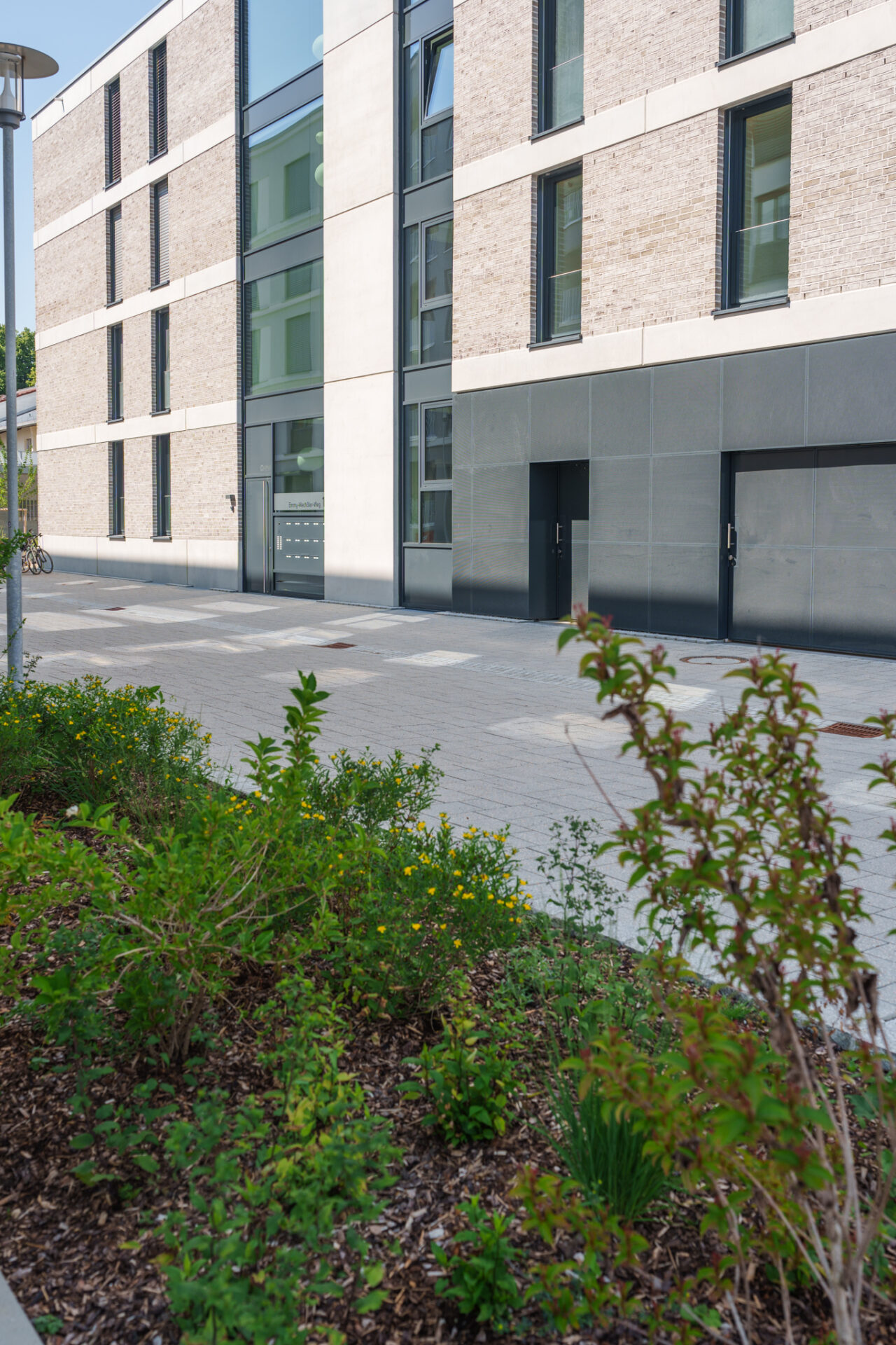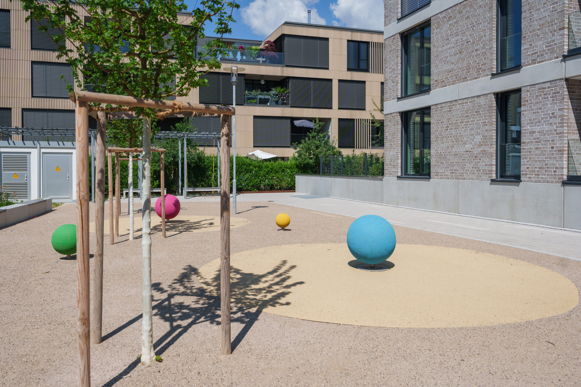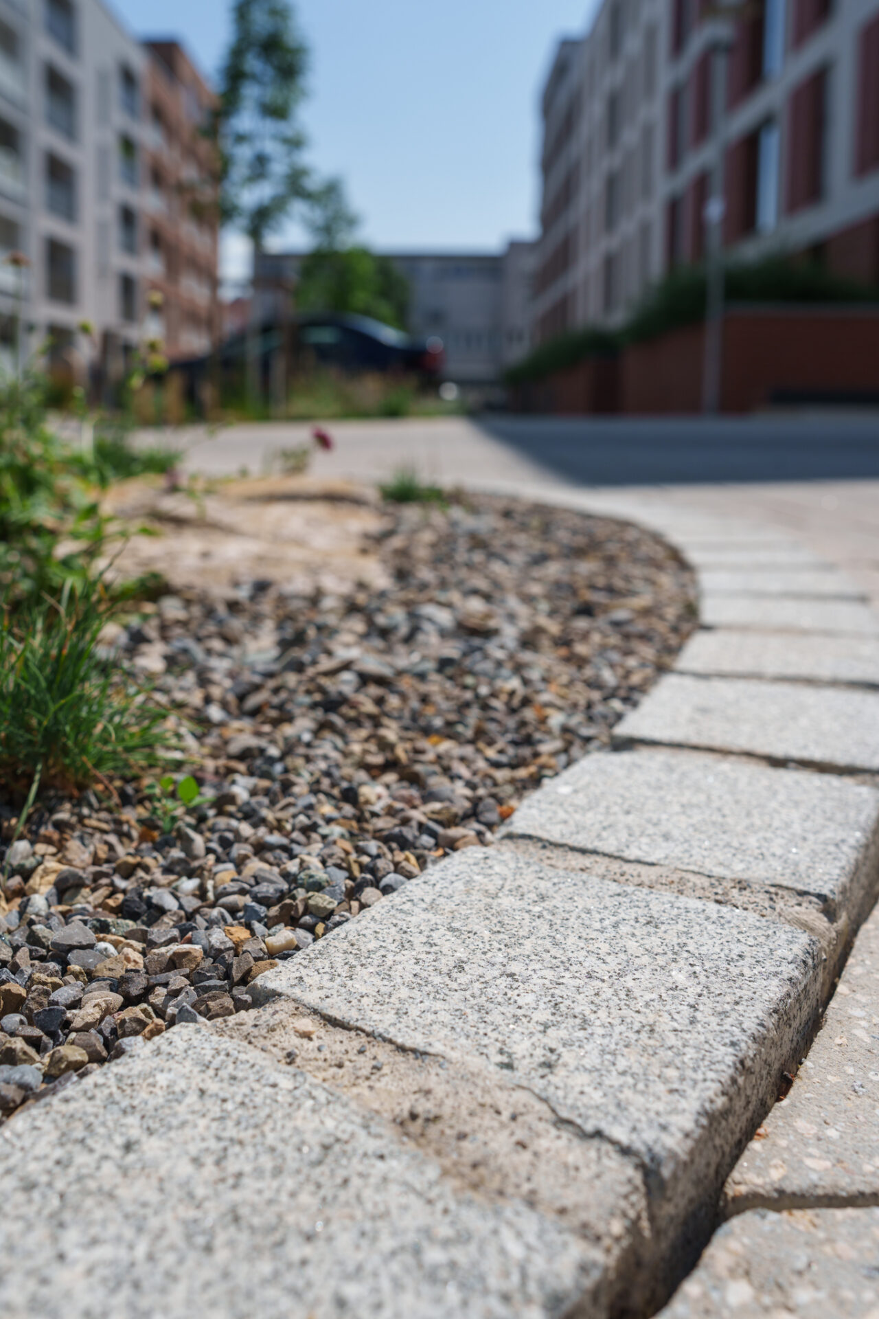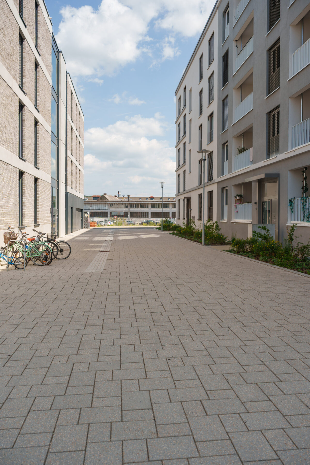 Ein weiterer Teil wird fertigNever change a running system. Gemäß diesem Motto gelang auch die Fertigstellung des dritten Bauabschnitts mit öffentlichen Spielbereichen, privaten Hochgärten und einer Zufahrt im besonders kraftschlüssigen Ellenbogenverband. Rankpflanzen werden die Pergola begrünen, während schon die Gräser und Perovskien im Wind an den Wohnungen entlang schwingen.